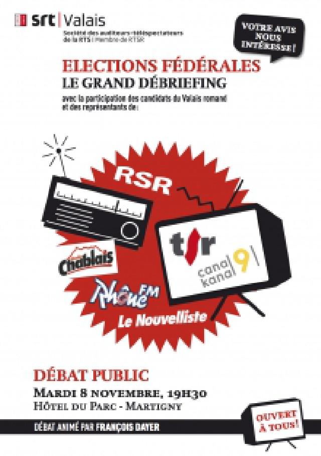 Le 8 novembre la SRT Valais organisait la dernière de ses séances décentralisées de l’année. Pour l’occasion, c’est Martigny qui a accueilli les représentants des divers médias valaisans, dont la RTS, ainsi que de nombreux politiciens afin de débattre de la couverture médiatique des élections fédérales du 23 octobre dernier.